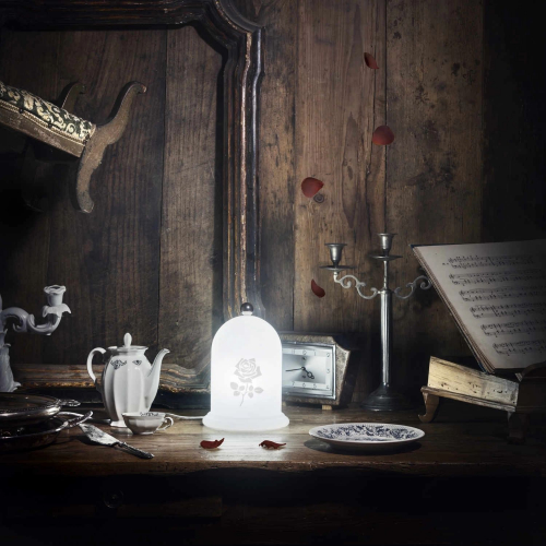 Rose – светодиодный светильник, дизайн которого был вдохновлен романтической сказкой «Красавица и Чудовище». Роза – волшебный цветок, символ проклятия, которое волшебница наложила на принца. Он проявляется, когда светильник включен. Модель выражает спокойную и сказочную элегантность в сочетании с четкими формами.