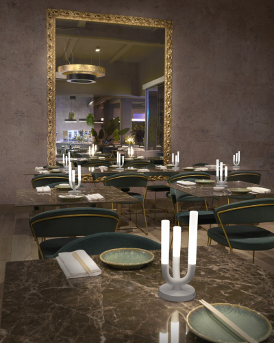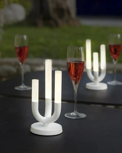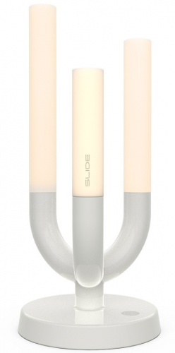Светильник Luna вдохновлен элегантными канделябрами на столах нашей памяти о далеком прошлом. Свечи, которые горят неравномерно, триптих огней, которые мягко светятся: все это перенесено в современную, портативную, легкую, перезаряжаемую лампу с мягким прикосновением и регулируемой яркостью. Высокая производительность Luna заключена в окрашенном металлическом основании и трех цилиндрических плафонах из непрозрачного плексигласа с тремя источниками сверхтеплого света.