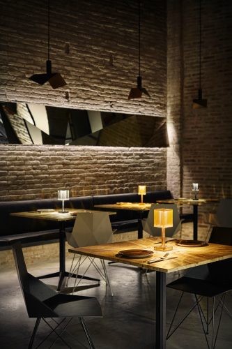В основе светильника Gatsby лежит идея создания окружающей атмосферы посредством игры света с помощью поверхностей светильника, где материал воспроизводит формы и ощущение стекла с гравировкой. Автономность, регулируемая интенсивность света и возможность выбора цвета проекции в любой момент делают Gatsby идеальным технологическим решением.