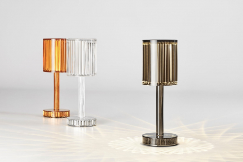 В основе светильника Gatsby лежит идея создания окружающей атмосферы посредством игры света с помощью поверхностей светильника, где материал воспроизводит формы и ощущение стекла с гравировкой. Автономность, регулируемая интенсивность света и возможность выбора цвета проекции в любой момент делают Gatsby идеальным технологическим решением.