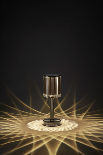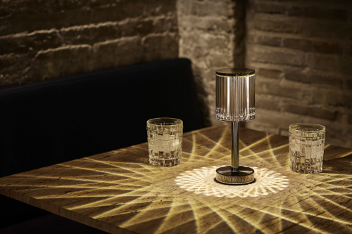 В основе светильника Gatsby лежит идея создания окружающей атмосферы посредством игры света с помощью поверхностей светильника, где материал воспроизводит формы и ощущение стекла с гравировкой. Автономность, регулируемая интенсивность света и возможность выбора цвета проекции в любой момент делают Gatsby идеальным технологическим решением.