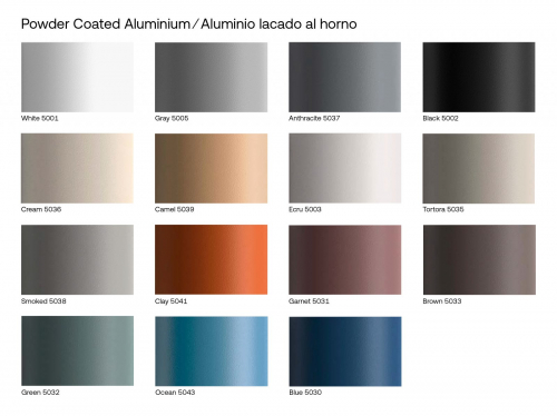 - Каркас выполнен из ударопрочного алюминия. Этот металл характеризуется низкой плотностью и высокой устойчивостью к коррозии и ударам. Кроме того, он на 100% подходит для вторичной переработки. В Vondom мастера используют два типа алюминия: AISI12 (EN AC-44100) и 6060 (AIMgSi, 3.3206, A96060). Оба алюминия окрашены запекаемой эпоксидной краской. Посмотреть палитру отделок.