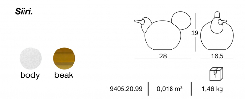 Linnut (от финского «птица») - это коллекция птиц-светильников, разработанная Iittala и Oiva Toikka в сотрудничестве Magis, начиная с коллекции Birds, птиц из дутого стекла, разработанных Oiva Toikka для Iittala с 70-х годов. Это очень веселая, поэтичная и по-настоящему инновационная коллекция. Sulo S, Sulo L, Siiri, Kirassi и Palturi (названия птиц в серии Linnut) - это перемещаемые светящиеся фигуры без кабеля, которые можно разместить на террасе, чтобы провести поздний летний ужин, или в качестве ночника дружелюбно осветить детскую комнату, в подъезде, прямо у входной двери. Каждая чудесная птичка будет радостно приветствовать Вас дома.