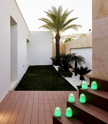 Особенностью светильников Djobie является функция блокировки цвета, которая отключает кнопки в нижней части лампы, чтобы посетители не могли сами менять цвета. Человек, владеющий дистанционным управлением, осуществляет полный контроль.
