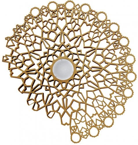 Светильник Notredame окрашен в золотой цвет, так что он может стать звездой самых элегантных и изысканных пространств. Новый оттенок, с его металлическими отражениями, подчеркивает эффекты света между заполненным и пустым пространством его трехмерной структуры.