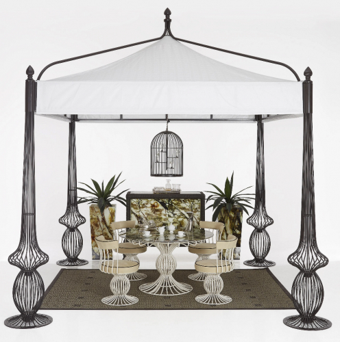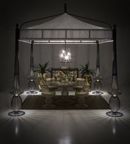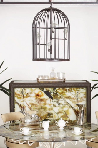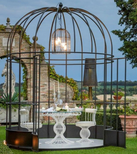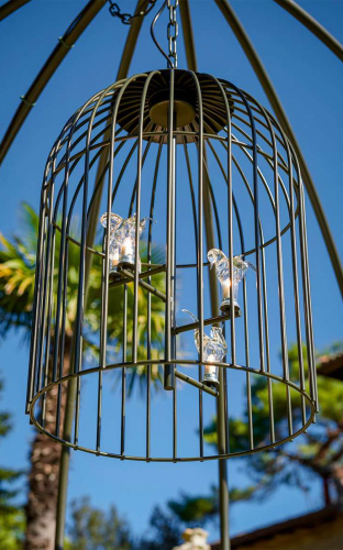 В коллекции Sole кованое железо превращается в беседки, лампы и величественные вазы. Эта коллекция создана с использованием железных прутьев, которые принимают извилистые формы благодаря мастерству мастеров DFN. Подвесной светильник Sole - это идеальный аксессуар для изысканного освещения открытых пространств. Рама светильника-клетки изготовлена из железа, эксклюзивные плафоны выполнены в виде сидящих на жердях птиц из муранского стекла. Светильник сертифицирован для наружного применения и доступен в нескольких конфиграциях. Концепция total look остается фундаментальной особенностью этой коллекции, которая переосмысливает железо, превращая его во что-то роскошное и элегантное. В то же время все элементы были обработаны, чтобы гарантировать длительное использование в наружных условиях. Часто используется в сочетании с элементами из коллекций Sirio и Canopo. Посмотреть палитру материалов Samuele Mazza.