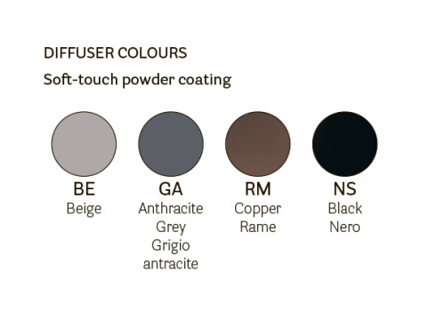 Варианты цвета абажура: бежевый (BE), антрацит (GA), медный (RM), черный (NS).