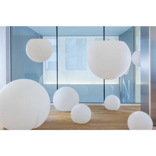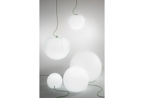 Коллекция светильников Happy Apple в форме шара. Если его расположить на земле, то создается ощущение, что он растет, а если подвесить – напоминает спелый фрукт на дереве. Подвесной светильник Happy Apple, светящийся полиэтиленовый корпус которого выполнен с использованием технологии ротационного формования. Практичная ручка, прикрепленная у основания светильника, позволяет легко поднимать, перемещать и подвешивать. Заглушка и ручка выполнены в белом цвете, кабель - в прозрачном.