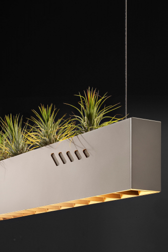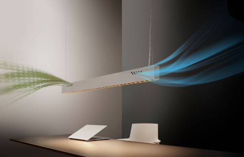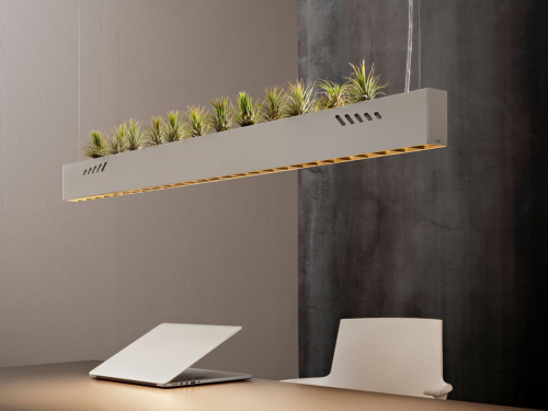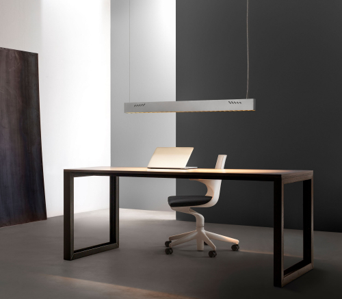 Источником света в светильнике является светодиодная система с очень высокой цветовой отдачей, расположенная в нижней части лампы и рассеивающая световые лучи вниз. Лампа также может быть оснащена темными пластинчатыми экранами, которые устраняют блики с любого направления, на которое Вы смотрите, гарантируя значение UGR (Unified Glare Rating) менее 19. Люди, работающие за экранами компьютеров, будут наслаждаться повышенным визуальным комфортом и оптимальным качеством воздуха.