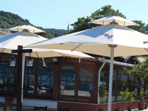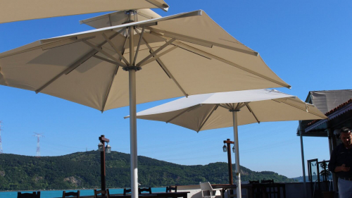 Дополнительный клапан для снятия ветровой нагрузки для зонтов серии Mega Telescopic актуален на площадках с высокой ветровой нагрузкой или на пляжах.