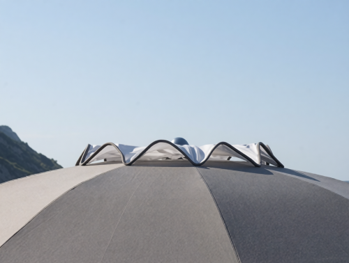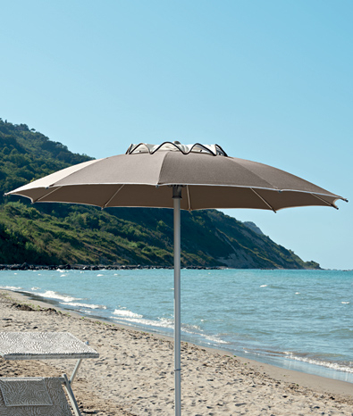 Клапан устанавливается на зонты в случае, если пляжный курорт находится в чрезвычайно ветренном месте, либо с декоративной целью. Подходит для всех зонтов Magnani, кроме Matisse и Picasso, т.к. у них уже установлен. Выполняется из той же ткани, что и купол зонта. Внутри отделан прозрачным пластиком, чтобы сделать изгиб более жестким.