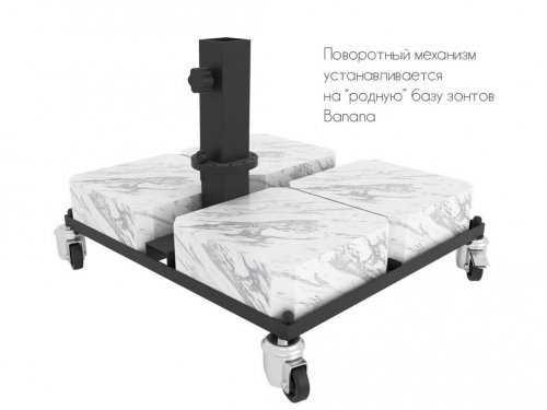 Механизм вращения TurningPart предназначен для зонтов Banana 2500х2500 мм, 3000х3000 мм, 3000х4000 мм, Ø3000 мм. Он с легкостью монтируется на основную базу.