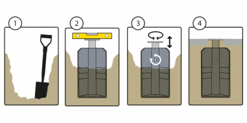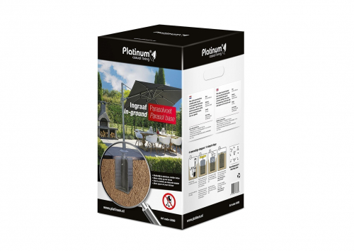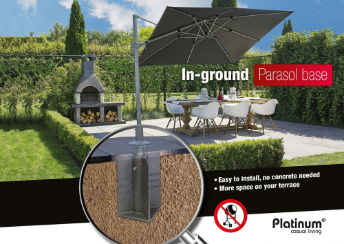 База для крепления в грунт подходит для зонтов Platinum - Challenger, Voyager, Falcon, Deltawing. Это уникальное подземное основание для зонта может быть легко установлено без использования бетона. Все, что Вам нужно сделать, это вырыть яму, установить основание, заполнить яму песком, и основание готово к использованию!
