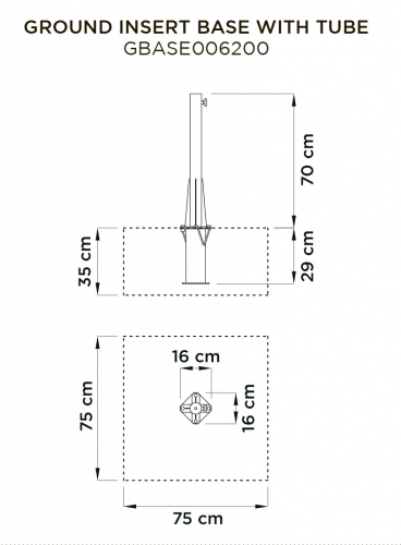 База для вставки в грунт из оцинкованной стали, верхняя труба из стали с порошковым покрытием (70 см) серебристого (SILV), графитового (GRAF) или белого (BIAN) цвета. Подходит для опор Ø 5 см и Ø 5,5 см.