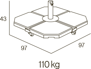 Утяжелительная база Cross выполнена из металла с бетонными утяжелителями и подходит для зонтов с диаметром опоры 48-50 мм.