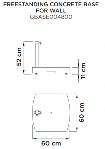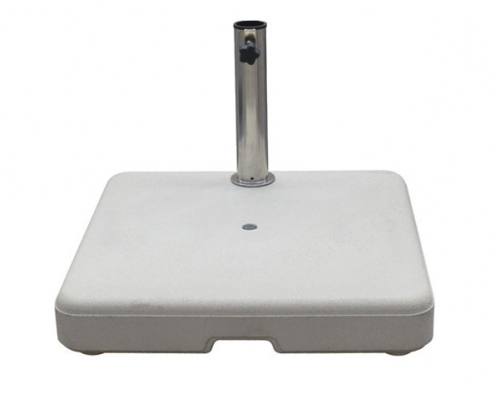 Утяжелительная плита квадратная для зонта из серого бетона с регулируемыми ножками и трубкой из нержавеющей стали.