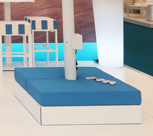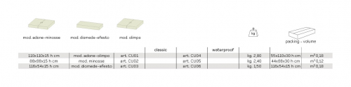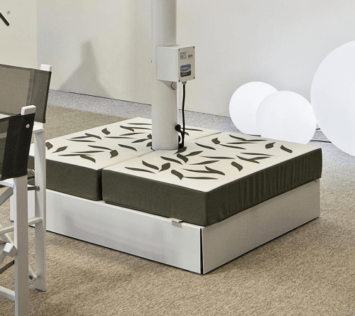 Dedalo – это практичная подушка, предназначенная для украшения и дополнения базы зонта. Доступна в двух версиях, прямоугольной или квадратной, она предлагает возможность использования конструкции утяжелительной базы, создавая таким образом атмосферу праздника и увеличивая количество сидячих мест. Разработанный для изделий Crema, Dedalo совместим с любым другим зонтом с базой таких же размеров. Подушка способна придать всему ансамблю большую элегантность и эксклюзивность.