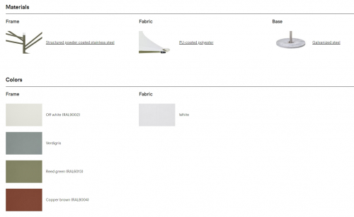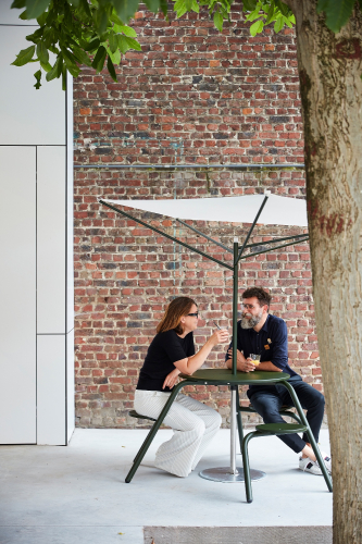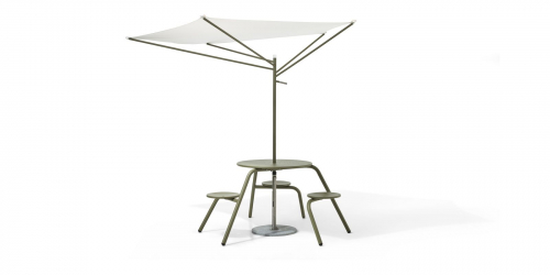 Вдохновением дизайнеру послужило африканское дерево акации, которое на протяжение тысячелетий эволюционировало, безупречно защищая от солнца все находящееся под собой. Прочный ветроустойчивый зонт Acacia отражает максимальное количество солнечных лучей с минимальной площадью поверхности. Закрытие невозможно, просто опустите мачту и снимите ткань для удобного хранения. Даже пустая конструкция - это произведение искусства, прекрасный пример биофильного дизайна, направленного на то, чтобы связать нашу неотъемлемую биологическую потребность в партнёрстве с природой в искусственно созданной среде.
