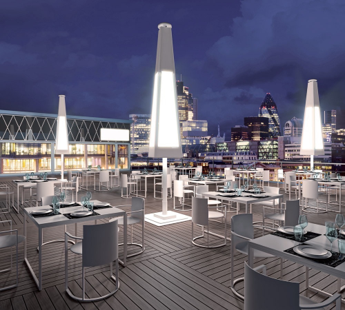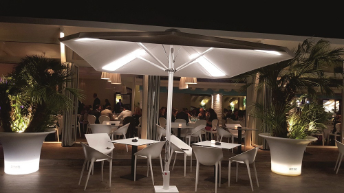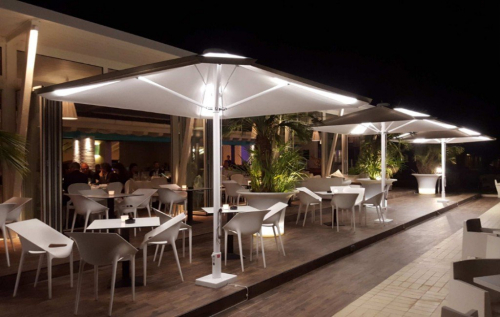 "Опираяся на особенности прошлого, мы изобрели солнечный зонт будущего". Pyramid - уникальный, революционный, запатентованный зонт с жесткой панелью и подсветкой. Солнцезащитный зонт Pyramid придает элегантность любому месту, в котором он находится, затеняя своих гостей от рассвета до заката. Когда он открыт, он обеспечивает тень и укрытие от дождя; его панели с подсветкой позволяют использовать его по вечерам, не прибегая к дополнительным системам освещения. Когда зонт закрыт, он превращается в изящно разработанную декоративную лампу.
