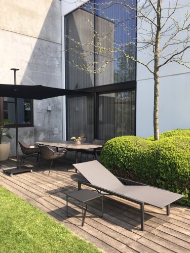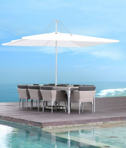 Infina означает отдых и простоту. Без привычного "узла" спиц и видимого каркаса купола дизайнерски зонт Infina - настоящая жемчужина чистой эстетики. При открытии купол становится полностью плоским - такой минималистичный дизайн очень выигрышно смотрится на фоне классических зонтов. Модель сочетает в себе инновационый дизайн и максимальную ветроустойчивость (до 61 км/ч). Модель доступна с круглым или квадратным куполом с простым механизмом откытия: потянув веревку, можно легко открыть зонт. Тросы из нержавеющей стали украшают верхнюю часть зонта, что подчеркивает современность и изысканную эсетитку зонта Infina.