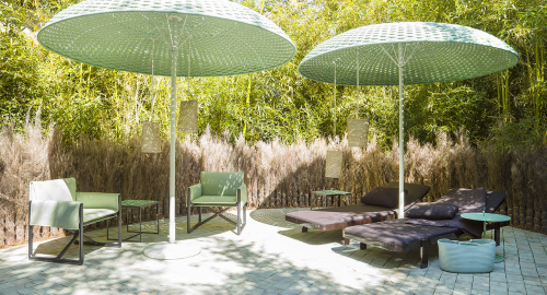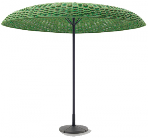 Зонт Mogambo с незакрывающимся солнцезащитным куполом. Купол покрыт канатом из пряжи Rope. Опора и каркас купола изготовлены из алюминия и стали. Они обработаны специальным лаком, что делает их пригодными для использования в сложных условиях. Mogambo можно поставить на землю, но по возможности рекомендуется использовать стационарное крепление, в обоих случаях необходимо использовать утяжелительную базу. Зонт можно дополнить и персонализировать с помощью сидений и столиков Clique. Он пропускает воздух и воду.