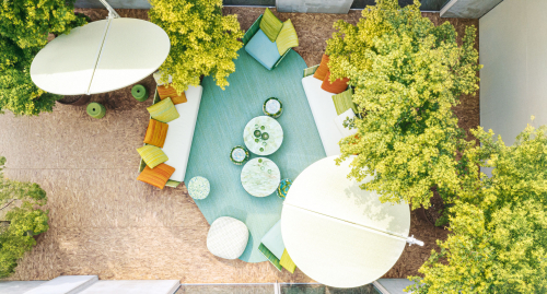 Солнцезащитный зонт Ombra с регулируемой высотой, образованный двумя независимыми полукругами, которые можно наклонять и ориентировать по-разному. Благодаря своему оригинальному и, прежде всего, функциональному дизайну, Ombra идеально подходит для лаунж-баров и ресторанов, поскольку он эстетичен и практичен и обеспечивает максимальный комфорт.
