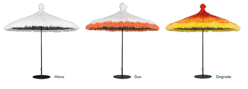 Разноцветный зонт Tahiti - современная интерпретация традиционного соломенного пляжного зонта, вызывающего мечты о далеких экзотических пляжах.