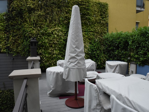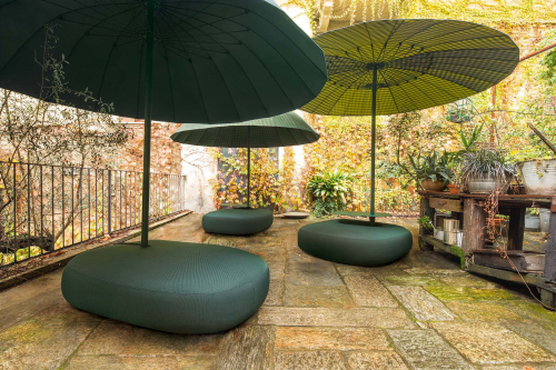 Зонт Bistro с плоским куполом круглой формы. Купол можно зафиксировать или наклонить в нужное положение. Зонт очень удобен в использовании, благодаря специальному механизму открывания-закрывания, спрятанному в несущей конструкции. Он обработан специальным лаком, что делает его пригодным для использования в сложных условиях. Зонт можно дополнить элементами для сидения и столиками из серии Clique. Bistro может стоять свободно, но фабрика рекомендует, если это возможно, закрепить его, в любом случае необходимо использовать соответствующий утяжелитель из лакированного литого чугуна. В случае сильного ветра необходимо закрыть зонт и, по возможности, закрепить всю конструкцию. Зонт от солнца Bistro получил награду GOOD DESIGN AWARD 2015 в категории "Lifestyle" и награду INTERIOR INNOVATION AWARD 2015, учрежденную немецким советом по дизайну в сотрудничестве с Imm Cologne.