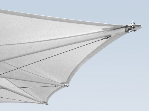 Новое дизайнерское изделие - зонт Type SHP - разработано с использованием качественных материалов: стали и ПВХ, что гарантирует максимальную долговечность. Ткань купола устойчивая к выцветанию, свето- и водостойкая. Она выдерживает любые погодные условия. Модель предназначена для установки на постоянной основе, а её замечательная форма добавляет необыкновенности любому пространству.