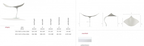 "Дизайн в движении" - это выражение лучше всего описывает последнюю инновацию TUUCI. Экспансивное крыло к крылу, рожденное в тени, ставит Stingray в отдельный класс. Благодаря сочетанию элементов из мира природы и новейших материалов морского класса, Stingray является одновременно отличительным и прочным. Вращаясь на 360 градусов вокруг своей вертикальной оси, модель создает тень в любое время дня. От мельчайших деталей его замысловатой шнуровки, оттенка эластичной ткани до полированного алюминиевого каркаса, Stingray создан на долгие годы блаженной и вдохновляющей роскоши тени.