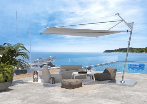 Kolibrie - это стильная парусная солнцезащитная система, которая имеет только одну смещенную опорную стойку из нержавеющей стали, способную вращаться на 360° за счет опорных подшипников. Благодаря моторизации управление может быть ручным или моторизованным. С анемометром тент автоматически закрывается при обнаружении сильного ветра.