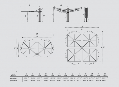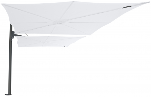 Благодаря своей уникальной форме дизайнерский зонт Spectra предлагает бесконечное разнообразие позиций. Этот потрясающий создатель тени сочетает в себе красоту плоского дизайна с функциональностью вентиляционной системы. Благодаря этой системе зонт закрывается горизонтально, а не вертикально. Уникальная и современная концепция. Spectra Duo обеспечивает в два раза больше тени на открытом пространстве, т.к. имеет два квадратных купола размером 2500х2500 мм.