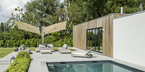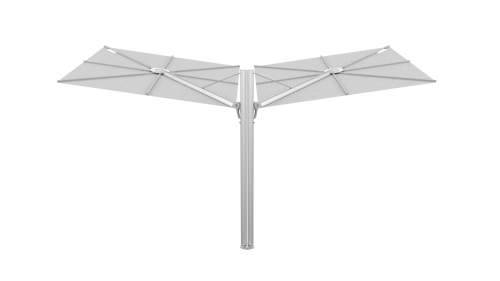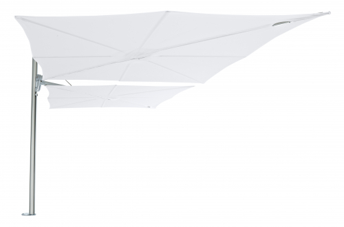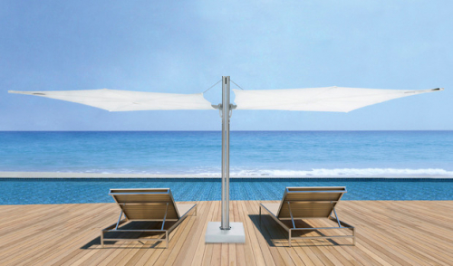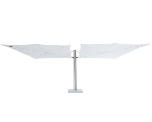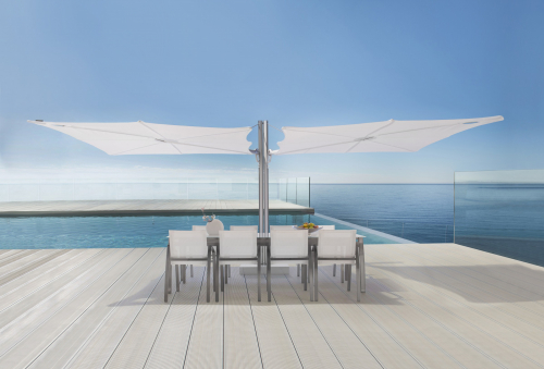 Благодаря своей уникальной форме дизайнерский зонт Spectra предлагает бесконечное разнообразие позиций. Этот потрясающий создатель тени сочетает в себе красоту плоского дизайна с функциональностью вентиляционной системы. Благодаря этой системе зонт закрывается горизонтально, а не вертикально. Уникальная и современная концепция. Spectra Duo обеспечивает в два раза больше тени на открытом пространстве, т.к. имеет два квадратных купола размером 2500х2500 мм.