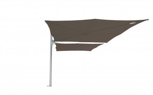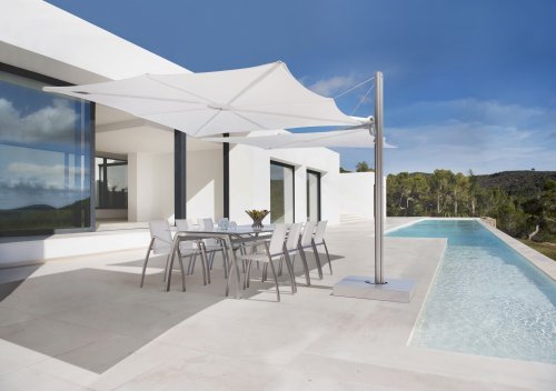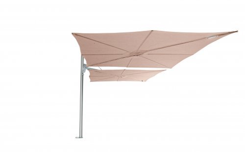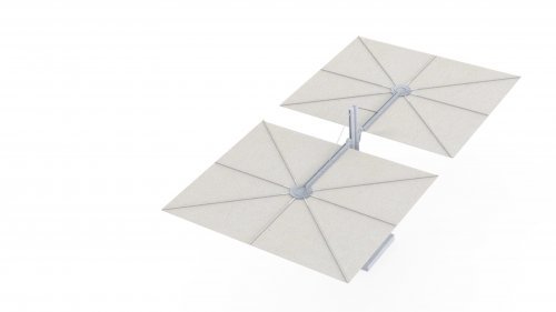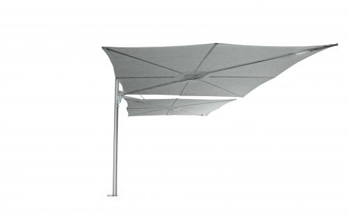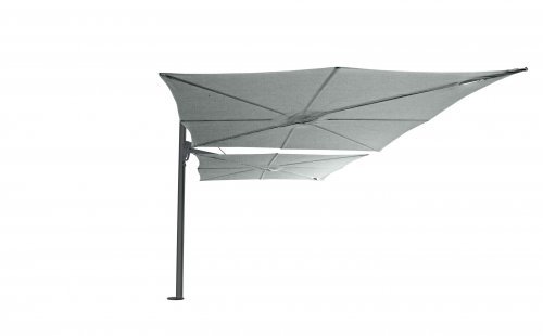 Благодаря своей уникальной форме дизайнерский зонт Spectra предлагает бесконечное разнообразие позиций. Этот потрясающий создатель тени сочетает в себе красоту плоского дизайна с функциональностью вентиляционной системы. Благодаря этой системе зонт закрывается горизонтально, а не вертикально. Уникальная и современная концепция. Spectra Duo обеспечивает в два раза больше тени на открытом пространстве, т.к. имеет два квадратных купола размером 2500х2500 мм.
