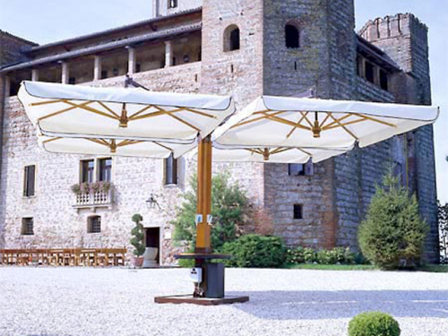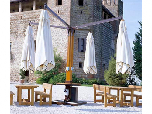 Великолепный зонт для затенения больших зон отдыха. Центральный столб размером 200 х 200 мм из твердой древесины ирокоподходит для уличного использования. Модель Quadrifoglio, с его особым вниманием к деталям, состоит из 4-х зонтов. Система открытия состоит из 4-х независимых механизмов. Все металлические части имеют порошковое покрытие. Металлическое основание 122 х 122 см.