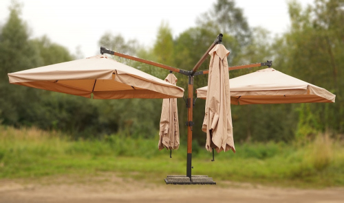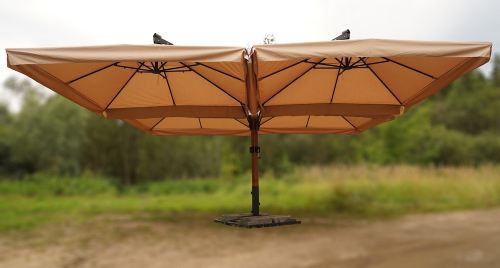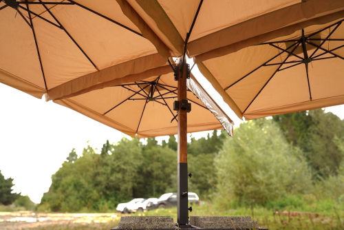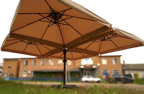Четырехкупольные модели Kupavna прекрасно подойдут для затенения большой площади на террасе кафе или летней площадке ресторана. Четырехкупольные зонты - дальнейшее развитие концепции многокупольных зонтов. Наличие одной стойки и четырех куполов позволяет укрывать большую площадь и при этом экономить место.