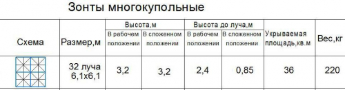 - Материал купола: ткань Оксфорд 600 - полиэфирная ткань повышенной плотности, наделенная водоотталкивающими и водоупорными свойствами. Купол может изготавливаться из различных по плотности и цветовой гамме тканей, с пропитками и без.