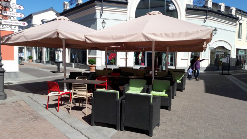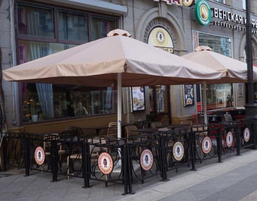 Стандартный цвет зонтов - белая опора, тент бежевый. Цвет можно изменить по согласованию с менеджером.