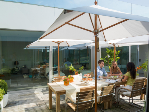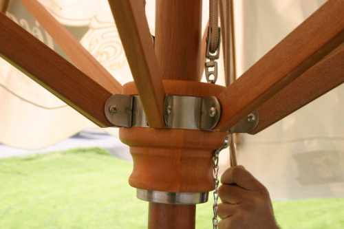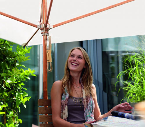 Деревянные зонты Type H фабрики MDT по-прежнему считаются одними из самых элегантных моделей с ностальгическим колоритом, которые доступны сегодня. Каждое изделие изготовлено вручную из высококачественного эвкалиптового дерева. Все соединительные элементы выполнены из нержавеющего металла. Деревянные зонтики чрезвычайно популярно распологать перед зданиями старого стиля и также воспринимаются как теплый контраст с современной архитектурой и эксклюзивными местами общественного питания на открытом воздухе.