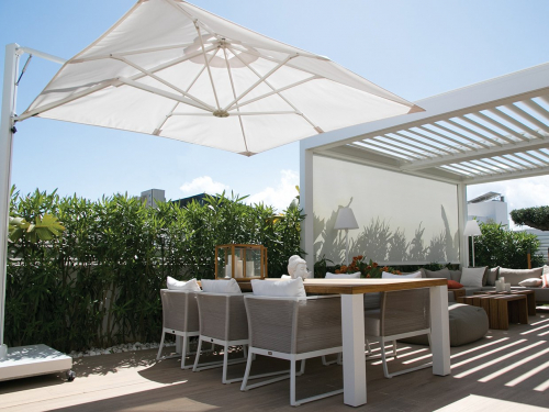 В сфере Contract зонты используются круглый год. Поэтому очень важно, чтобы изделие было прочным и устойчивым к погодным условиям. Зонты компании Prostor именно такие. Инженеры разрабатывают на заказ прочную и функциональную защиту от солнца и УФ-лучей. Prostor следует последним тенденциям в дизайне и цветовой гамме.