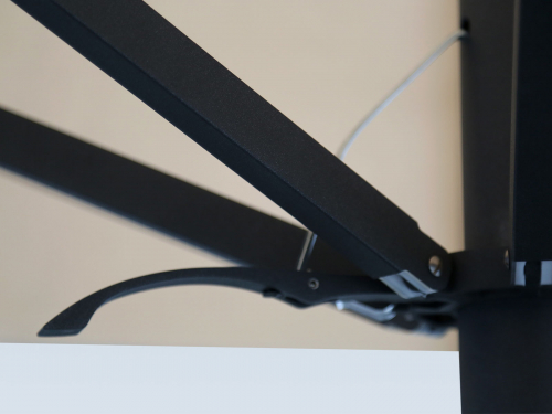 - Телескопическая система позволяет зонту открываться и закрываться выше высоты мебели.