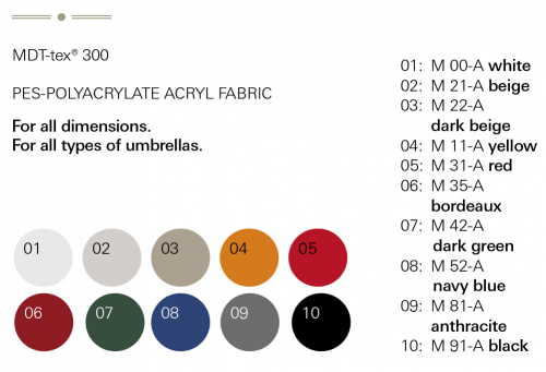 - Купол с воланом выполнен из 100% акрила (полиакрилат PES) MDT®-tex, 300 г/м².