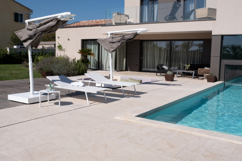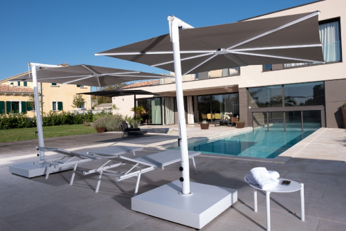 Новинка 2023 года от фабрики SCOLARO, уникальный зонт Alba Starwhite выполнен в инновационном дизайне с плоским куполом, идеально подходящим для стильных открытых пространств. Больше не нужны механизмы и тросы для открытия зонта, модель открывается как веер и закрепляется при помощи магнита и застежки на липучке - и зонт уже готов к использованию! Благодаря такой системе нет необходимости убирать мебель под зонтом - купол придвигается к опоре простым движением.