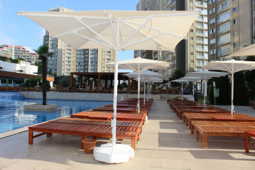 Avocado - профессиональный зонт с центральной опорой из алюминия, что обеспечивает высокую устойчивость модели. Он защитит от ярких солнечных лучей и создаст приятную затененную атмосферу в частных садах, открытых летних площадках кафе, баров и ресторанов, зоны возле бассейна.