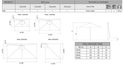 Wall - это переосмысление классического зонта. Специальная форма позволяет разместить опору рядом со стеной, чтобы после закрытия зонт не занимал место. В модели 2x2 м опору можно разместить в углу, поэтому он идеально подходит для небольших открытых пространств. Зонт Wall подходит для использования как в сфере Contract (отели, бары и рестораны), так и в частных пространствах (террасы, балконы и сады). Каждая спица может быть заменена индивидуально, без необходимости разбирать всю конструкцию, а ткань навеса легко снимается для обслуживания или замены. Каркас выполнен из алюминия с деталями из нержавеющей стали для обеспечения долговечности. Все продукты FIM разработаны и изготовлены в Италии с использованием лучших материалов для наружного применения, чтобы гарантировать исключительную долговечность даже в самых жестких условиях окружающей среды.