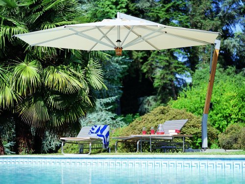 Элегантный и функциональный зонт Capri станет украшением частного сада или террасы кафе и ресторана. Он вращается вокруг основания на 360° и легко открывается с помощью ручной лебедки. Имеется система быстрой замены спиц, ткань купола легко снимается для обслуживания или замены.