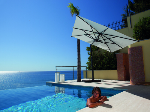 Коллекция зонтов Ischia является топом продаж. Открытый зонт можно наклонить, он вращается вокруг основания на 360° и легко открывается с помощью ручной лебедки. Прекрасно подойдет для частного использования в садах и на летних площадках загородных домов, а также для открытых пространств сферы Contract. Система быстрой замены спиц освобождает от разборки всей конструкции зонта, а ткань купола легко снимается для обслуживания или замены.