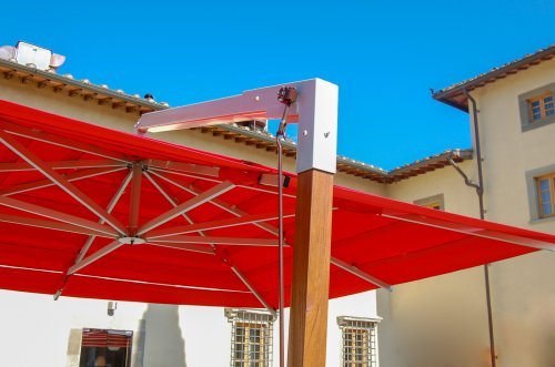 Купол зонта возможен двух вариантов: стандартный и с системой Split. Split-система - это инновационная технология, разработанная для повышения устойчивости зонта к ветру и дождю. Эта функция "анти-ветер" основана на специальной конструкции тента, в которой предусмотрены прорези. Такие прорези позволяют ветру проходить сквозь тент, предотвращая создание парусного эффекта и обеспечивая стабильность зонта во время сильного ветра. Дождевые капли также легко стекают по полосам тента благодаря этой конструкции, минимизируя вероятность попадания воды внутрь зонта.