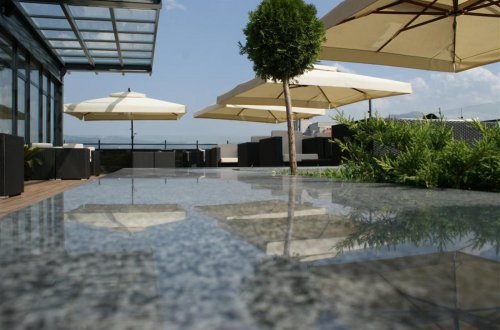 Talento Steel - зонт простого дизайна, первая модель, которая была произведена с боковой опорой в 1988 году. Его чистые линии и конструкция, вращающаяся 360°, делают его универсальным и подходящим для любых открытых пространств.