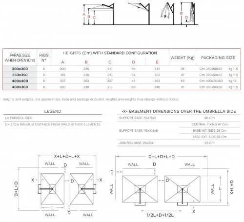 LED Lighting KIT - cистема светодиодного освещения с кабелями, проходящими внутри рамы зонта. Состоит из 4 либо 8 светодиодных панелей из анодированного алюминия. По умолчанию - теплый свет 2700K, по запросу - холодный свет либо комплект RGB-ламп. Степень защиты IP65 - полная защита от проникновения пыли, защита от струй воды со всех направлений.